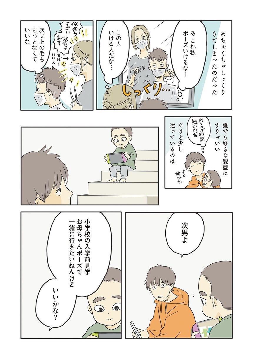 前の回 一覧へ いってらっしゃいのその後で 第14話 素敵ボーズになりました 2022年04月28日 この記事をブックマークする 子どもを慌ただしく送り出した朝。 ひとりになって一番自分らしい瞬間に感じた 日々の小さな出来事を綴ります。毎週木曜日更新予定。 いってらっしゃいのその後で いってらっしゃいのその後で ツルリンゴスター 【定価】 1,210円(本体1,100円+税) 【発売日】 2021年11月26日 【サイズ】 A5判 【ISBN】 9784046808516 試し読み 紙の本を買う 電子書籍を買う おすすめコミックエッセイ この記事をブックマークする 前の回 一覧へ この記事をシェアする