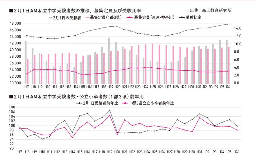 昨今の中学受験は、首都圏を中心に盛況であるとされています。森上教育研究所が2024年2月に公表したデータ・グラフを示します。