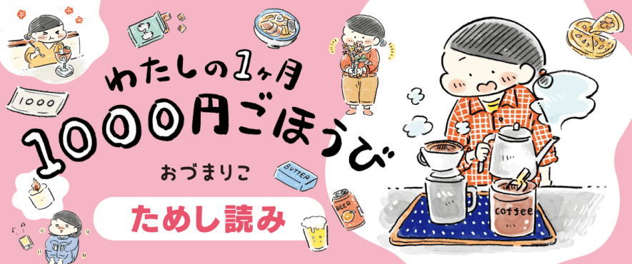 10年間派遣社員として年収200万生活を送ってきたおづまりこさん。1000円の「ごほうび予算」で、なんでも好きなものを買っていいルールをもうけています。1000円とじっくり向き合うと、自分が一番好きなことややりたいことが見えてくる。生活がワクワクして、気持ちが満たされていくコミックエッセイ無料ためし読み!