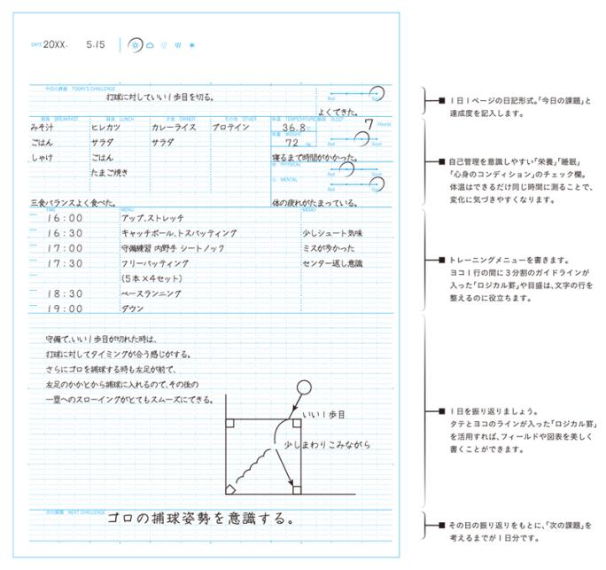 「ノートに書く」ことは、勉強だけでなく、スポーツの上達にも役立ちます。『ロジカル・スポーツノート』は、目標設定をはじめ、日々のトレーニングや自身のコンディションなどを記録でき、達成度や課題などを振り返ることができるスポーツ専用ノートです。