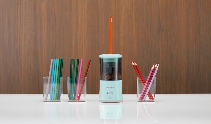 鉛筆を使うようになると必要になるのが「鉛筆削り」。リーズナブルな手動の鉛筆削りもありますが、菅さんのおすすめは全自動タイプの『SASITEMI(サシテミ)』です。