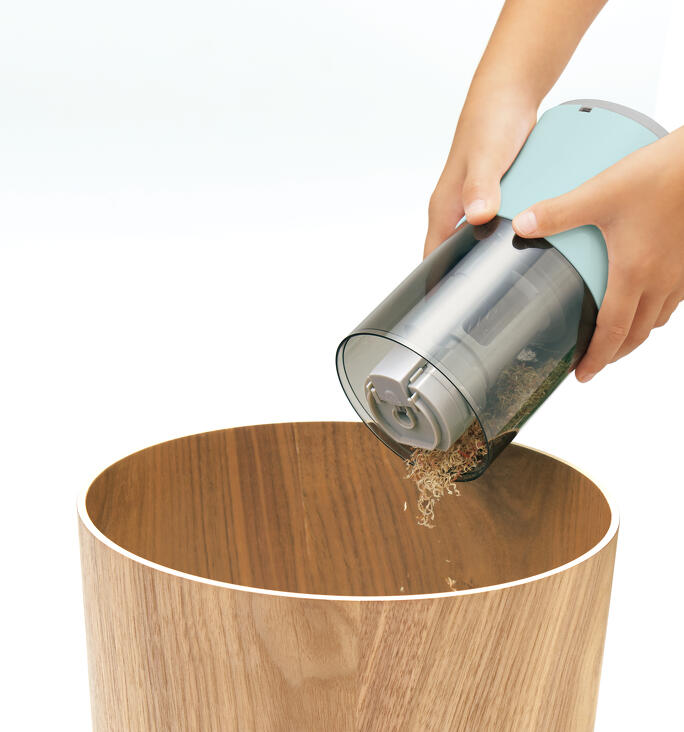 使用中の鉛筆は1本約6秒、新品の鉛筆は約12秒で削る全自動タイプ。削りカスも簡単に捨てられる縦長デザイン。