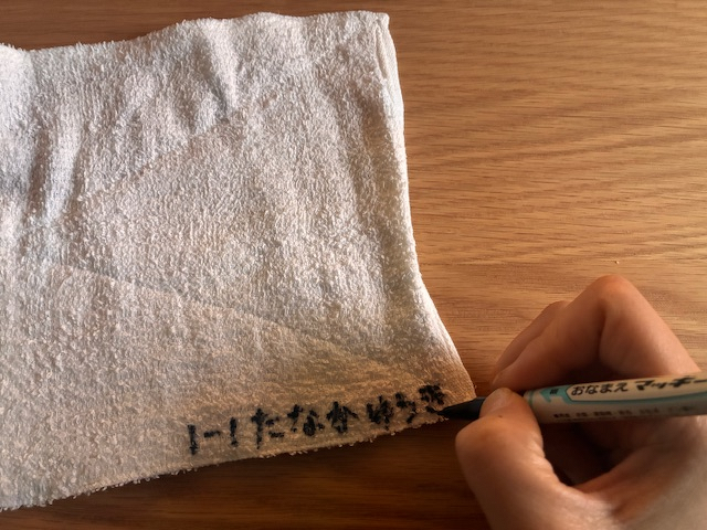 一般的な油性マーカーでも代用できると思われがちですが、布に文字を書くと、繊維のすき間にインクが広がって文字がにじんだり、ペン先が布に引っかかってうまく書けなかったりすることがあります。