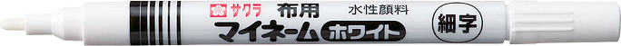 濃い色の布にも白くくっきり書ける『マイネーム ホワイト』。太さは細字と極細の全2種展開。
