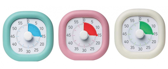 時間を視覚でとらえることができるタイマーです。中央のつまみをひねるだけセットでき、時間経過を色の変化でパッと実感できます。