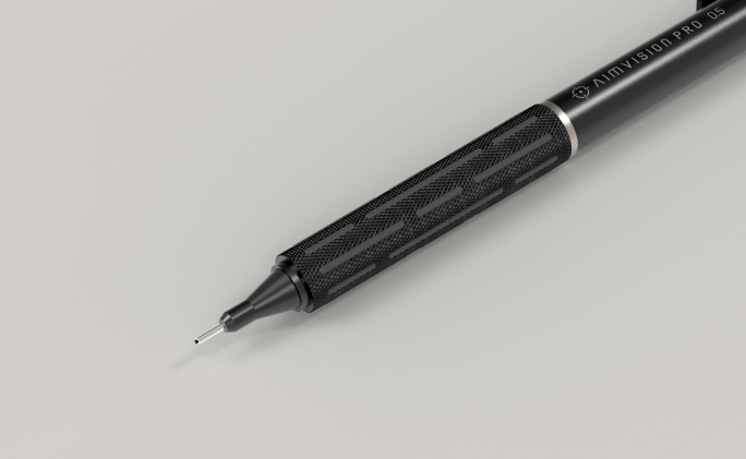 「『AIMVISION PRO(エイムビジョンプロ)』は、プロ仕様の製図用シャープペンです。キャップ部分に、芯の硬度を表示するダイヤルがあり、どの硬度の芯を入れたのかひと目でわかるようになっています。ダイヤルを回したときの手触り感は抜群で、ギミック好きな子どもにはたまらない魅力となるはず。ボディは、高級感が漂う金属製。グリップ部分は、細かい凹凸模様のローレット加工とラバーの組み合わせにより、優れたグリップ感を実現しています。持っているだけでうれしくなるような、所有欲を満たすアイテムです。1本7000円を超える価格に驚くかもしれませんが、特別な日の贈り物にぴったりのカッコよさです」