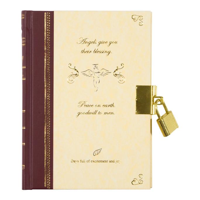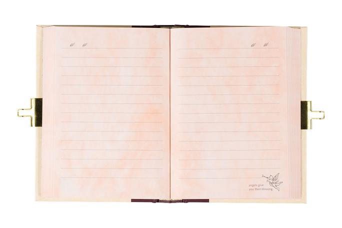 表紙は天使を箔押し。中紙は日付を書く欄と罫線、天使の絵柄がワンポイントになった1日1ページのシンプルなフォーマット。