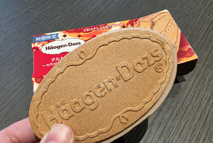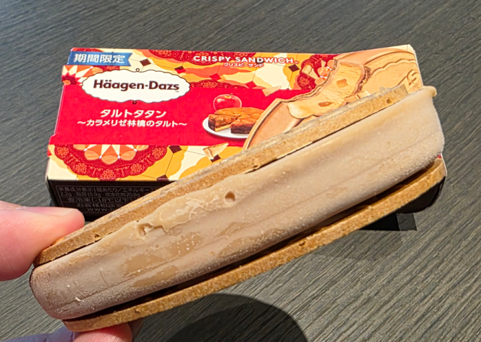アイス好きなSさんはもう1点、期間限定で発売中のハーゲンダッツ クリスピーサンド「タルトタタン~カラメリゼ林檎のタルト~」(ハーゲンダッツ ジャパン株式会社)も試食。