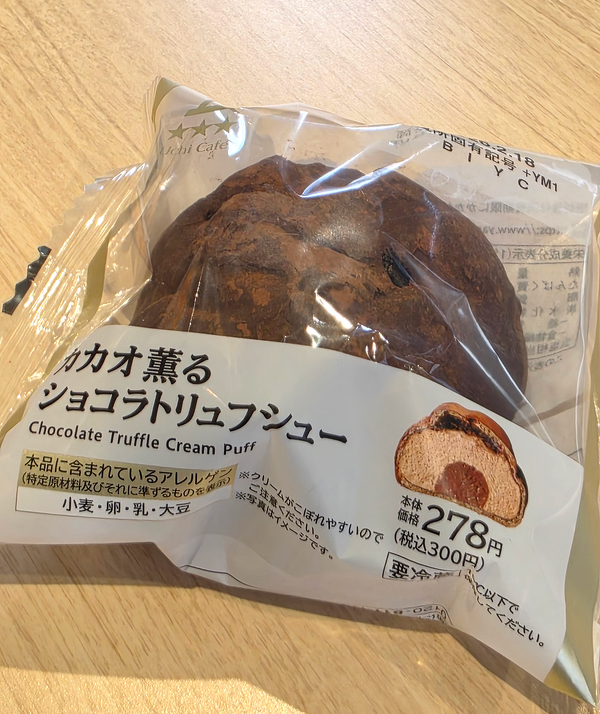 Sさんが試食した2品目はローソンの「カカオ薫るショコラトリュフシュー」。こちらは関東圏の店舗限定の商品です。