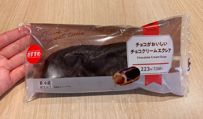 Hさんが次に食べたのは、ファミリーマートの「チョコがおいしいチョコクリームエクレア」。