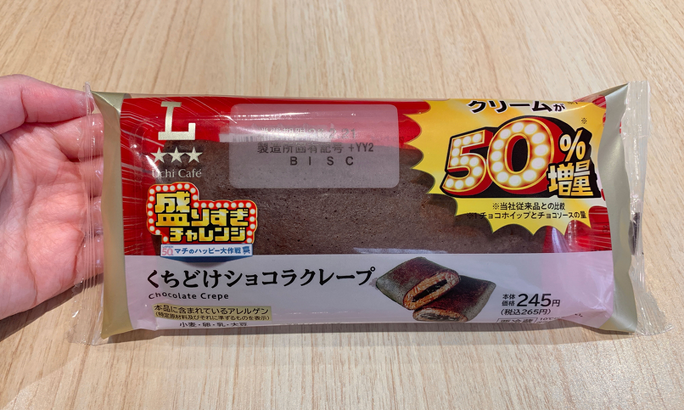 Hさんがまず食べたのは、ローソンの「盛りすぎ!くちどけショコラクレープ」。