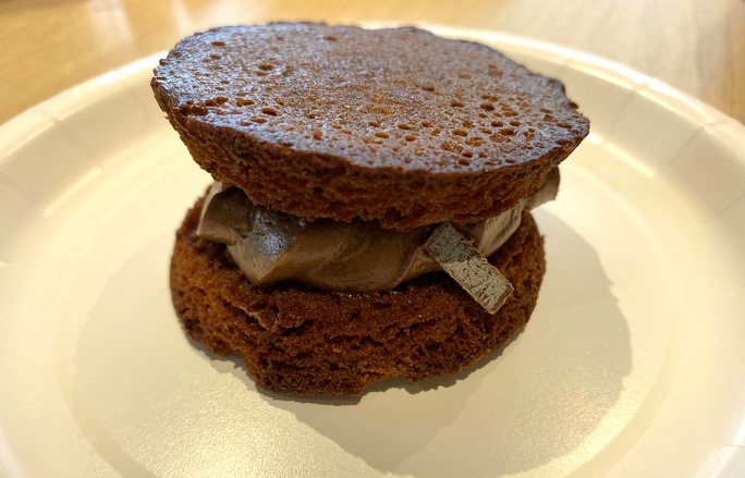 表面がカリッとしていて中はしっとりしたブラウニーは、かめばかむほど甘みが増していきます。そんなブラウニーにチョコレートクリームの甘さが絡まった瞬間、口の中は至福の甘さに!