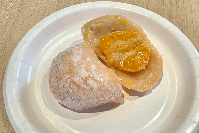 ひと口食べるとミカンの果汁が口に広がります! ミカンのさっぱりとした味わいと、甘めの白あん、やわらかいお餅のバランスが絶妙で、ボリューム感はありながらペロッと食べてしまいました。