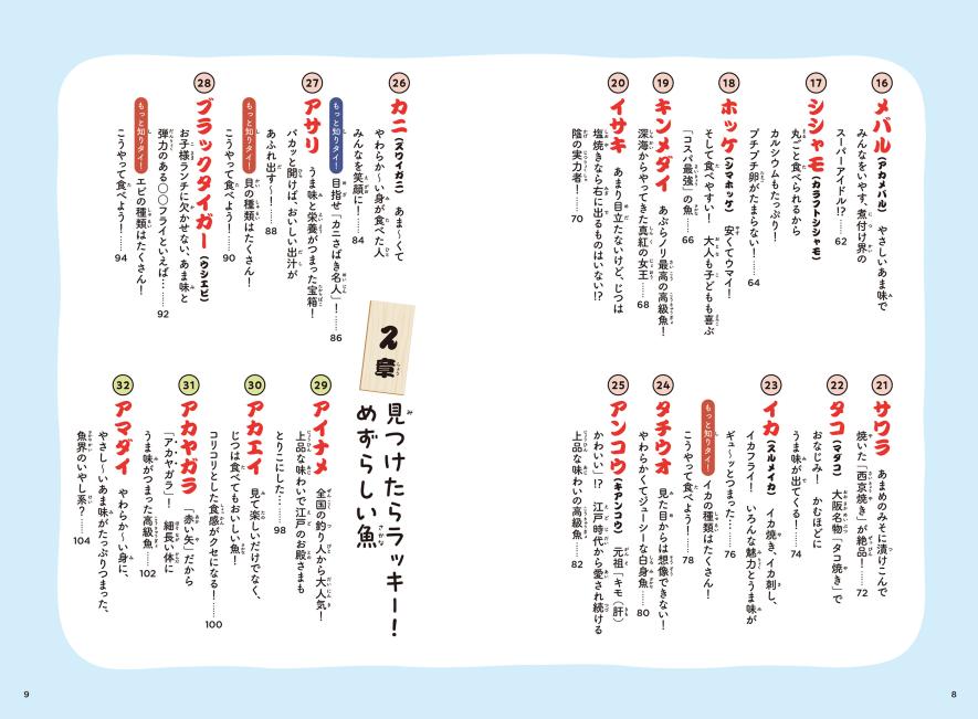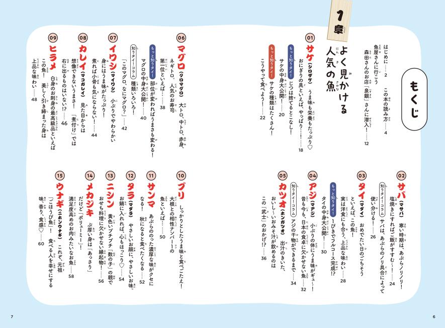 魚74種の「おいしいヒミツ」を中心に、人気の魚屋・森田釣竿さんのプロの目利きやおいしい食べ方、切り身になる前の姿がわかる解体図など、読んで楽しく、試しておいしい内容をたっぷり紹介しています。また、すべての漢字にふりがなが付いているので、小学生でも一人で読むことができ、魚を通して「食」や「命」を学ぶ食育にもぴったりです。