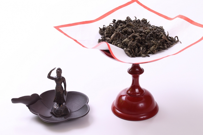 甘茶というのは、その名のとおり、アマチャという植物の葉っぱ(またはアマチャヅルの葉っぱ)を煎じた、自然な甘みのする飲み物です。お花祭りには欠かせませんが、昔はさまざまな香料を調合した香湯《こうとう》を、誕生仏に注ぎました。甘茶を用いるようになったのは、江戸時代の頃からのようです。