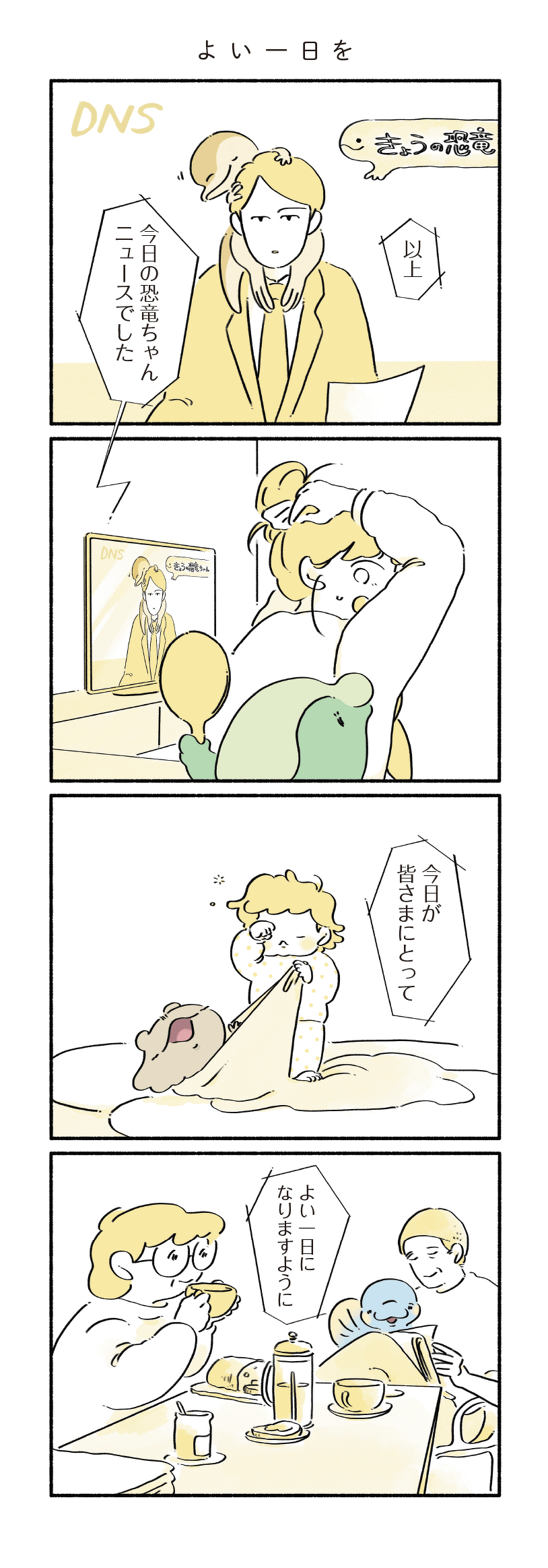 一覧へ 次の回 『恐竜はじめました2』第1回 よい一日を 2024年01月26日 保護者 恐竜 この記事をブックマークする ここは今でも恐竜が暮らす町、白亜町。心優しい町の人々と、町に蘇ったちいさな恐竜たちが繰り広げるあたたかいストーリー。2月2日にファン待望の単行本第二弾が発売になります。 第2回へ続く(2月2日公開予定) 『恐竜はじめました2』は、2月2日発売! 恐竜はじめました2 恐竜はじめました2 著者:クラナガ 【定価】 1,430円(本体1,300円+税) 【発売日】 2024年2月2日 【サイズ】 A5判 【ISBN】 9784046829146 紙の本を買う 『恐竜はじめました』好評発売中! ためし読みも公開中 恐竜はじめました 恐竜はじめました 著者:クラナガ 【定価】 1,320円(本体1,200円+税) 【発売日】 2023年4月13日 【サイズ】 A5判 【ISBN】 9784046819451 試し読み 紙の本を買う 電子書籍を買う ヨメルバ会員限定!『恐竜はじめました』壁紙配布中 Web会議や授業等のバーチャル背景にも使用できる壁紙を配布中です。 ぜひ、ダウンロードしてくださいね♪ ●ヨメルバ会員の方はこちらから ●ヨメルバ新規会員登録はこちらから ※ヨメルバ会員の詳細はこちらから この記事をブックマークする 一覧へ 次の回 この記事をシェアする
