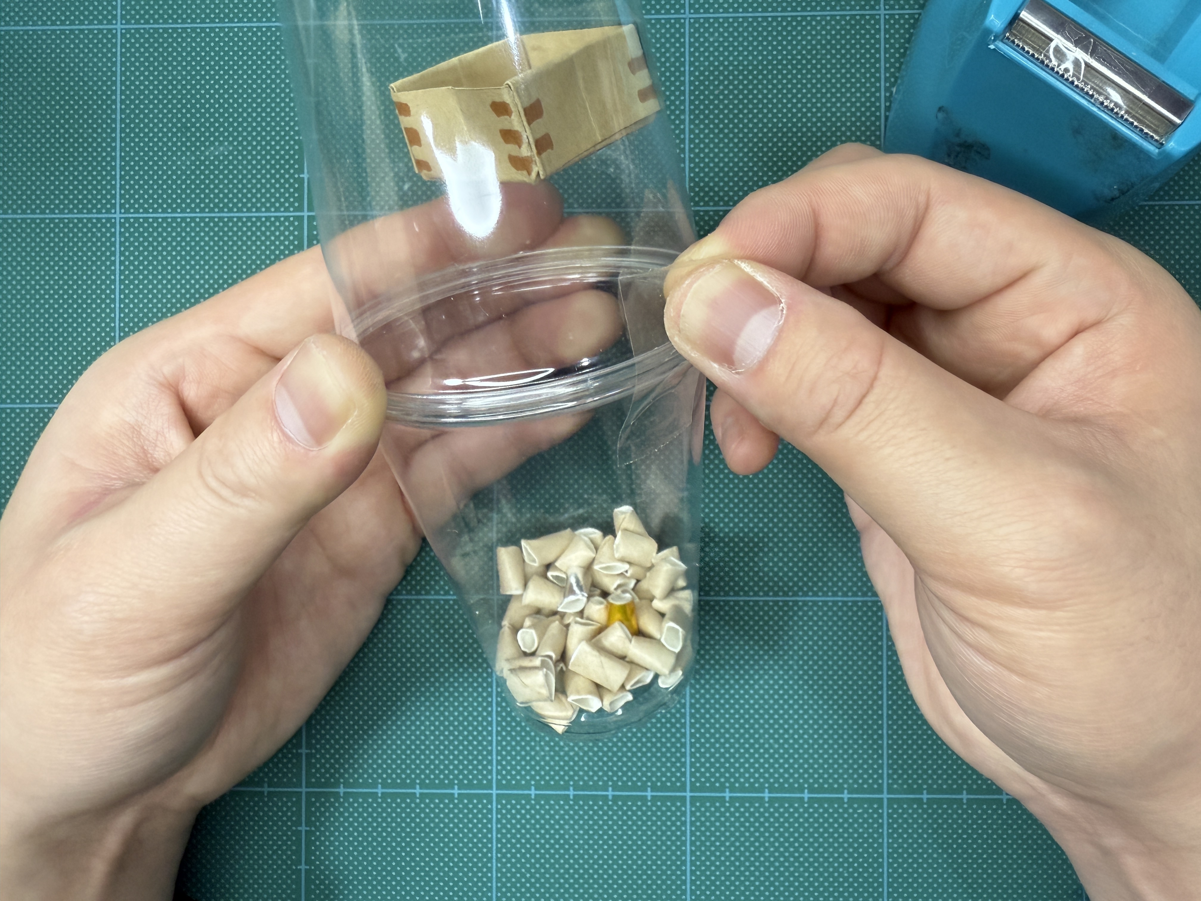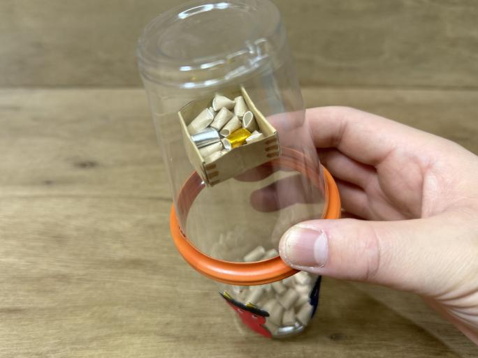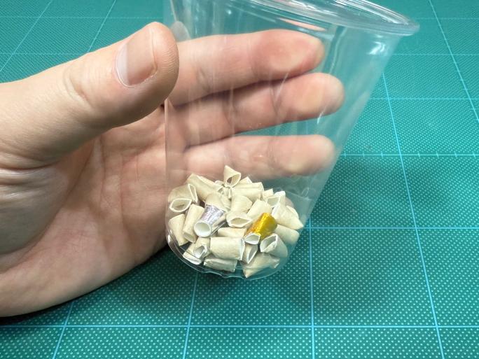 これで「豆」の完成です!なくさないように、プラコップに入れておきましょう!