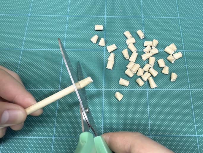 ④ 残りの紙ストローを、全て1cmくらいに切り、普通の豆を作ります。