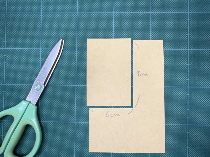① クラフト紙を長方形(今回は6cm×9cmくらい)に切る。