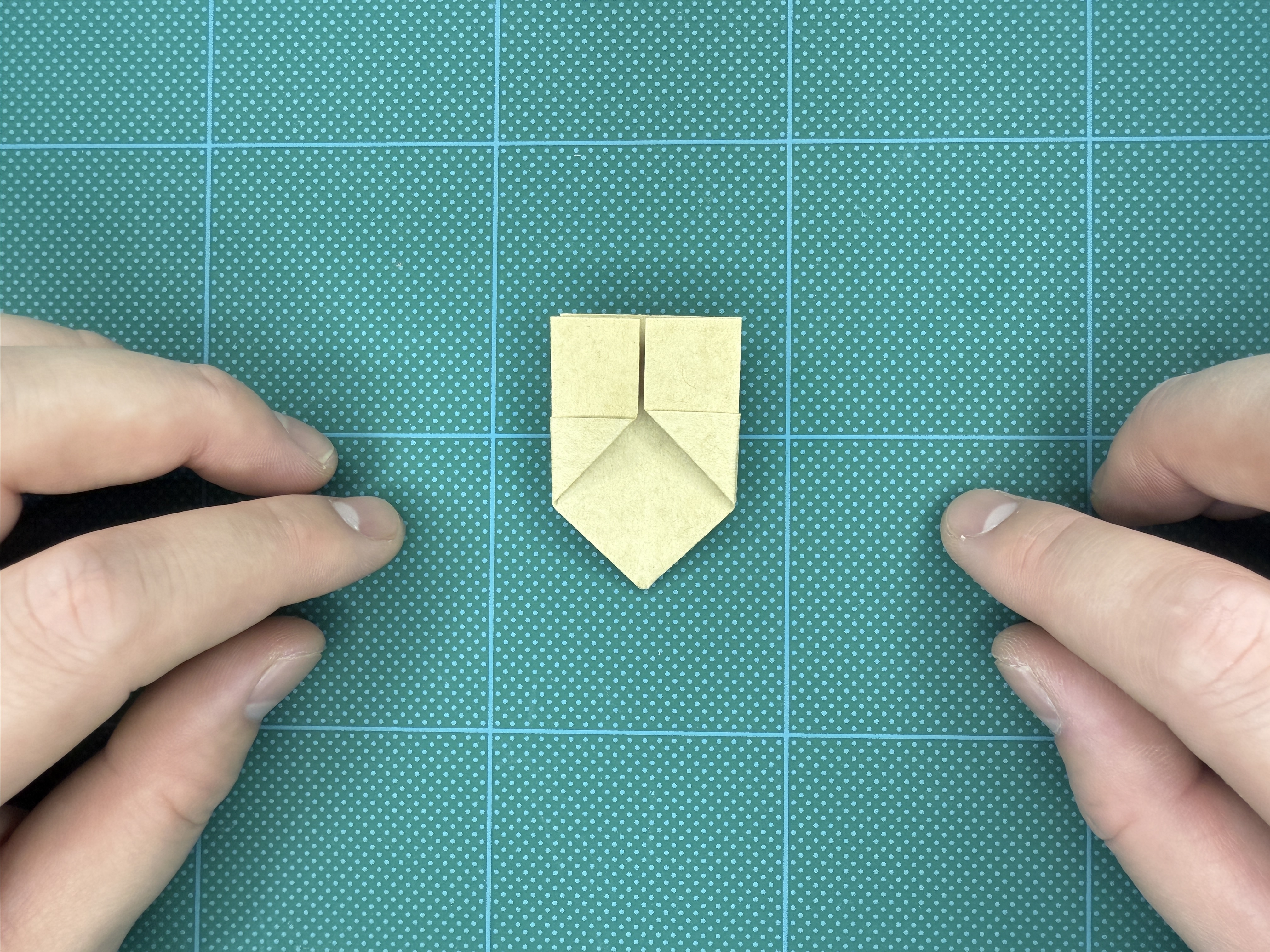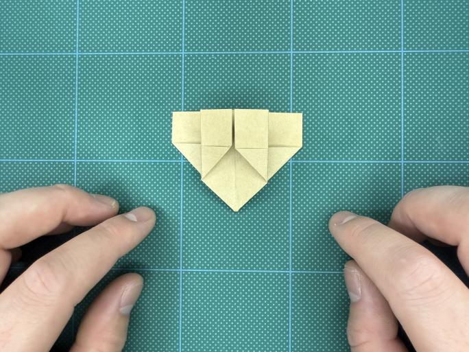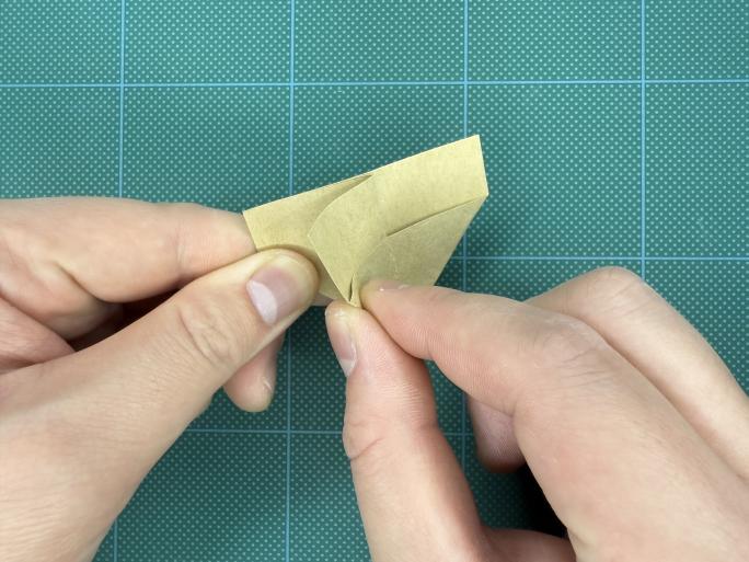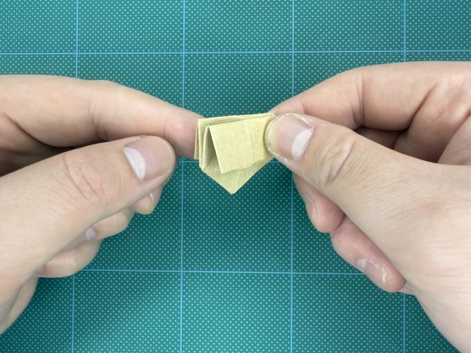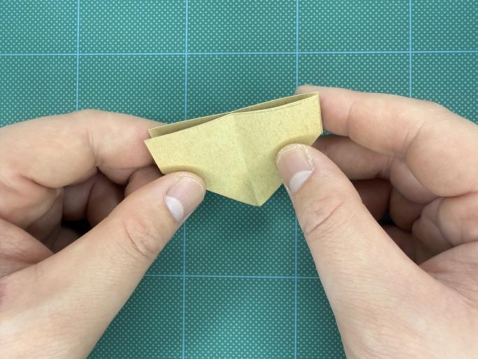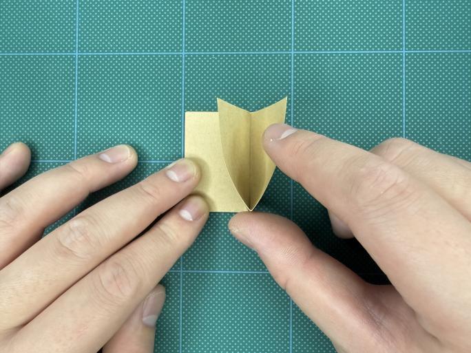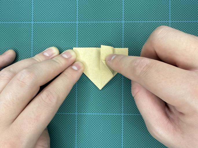 ⑨ 下の部分を三角に折り、クセをつけて戻します。