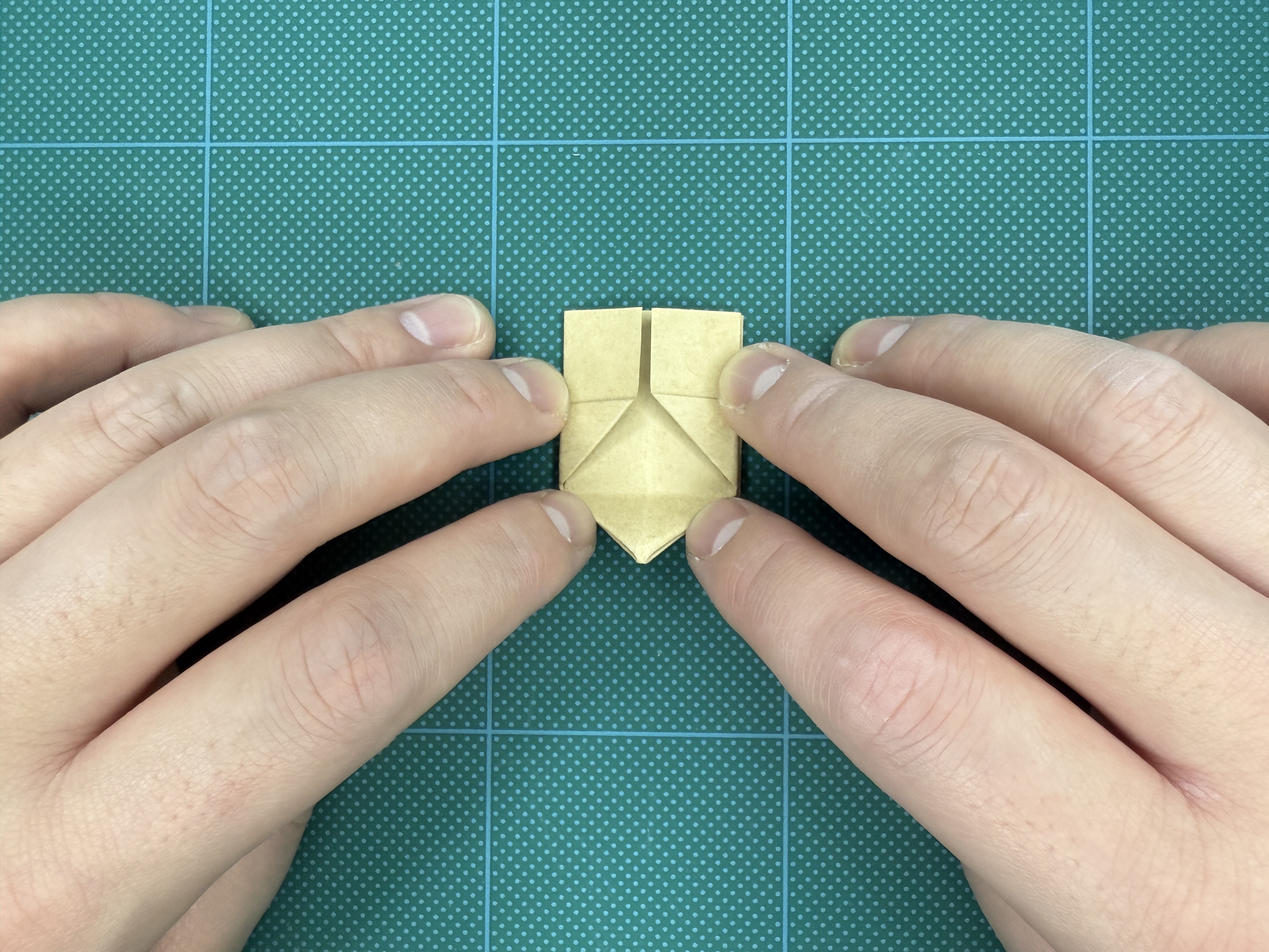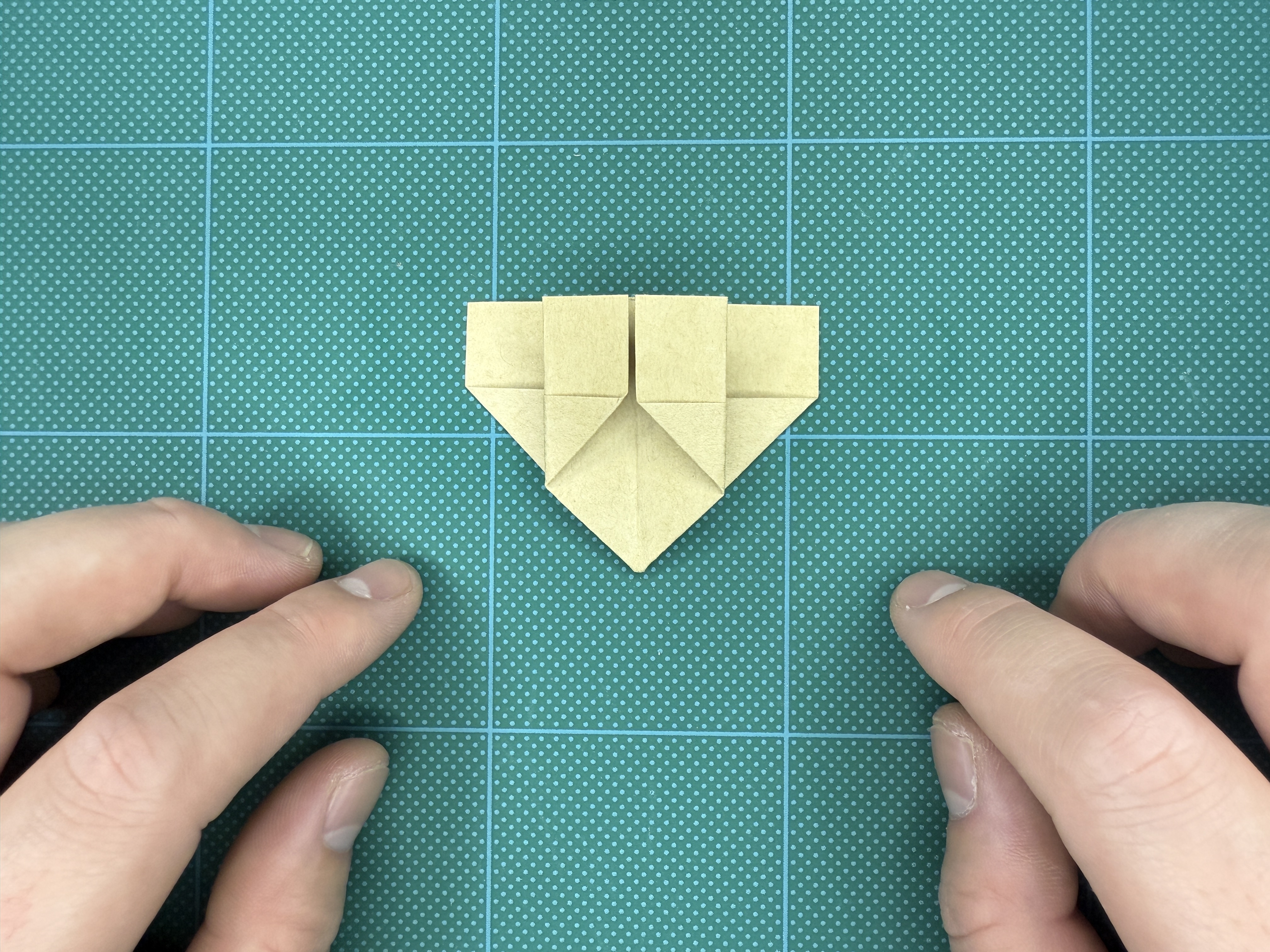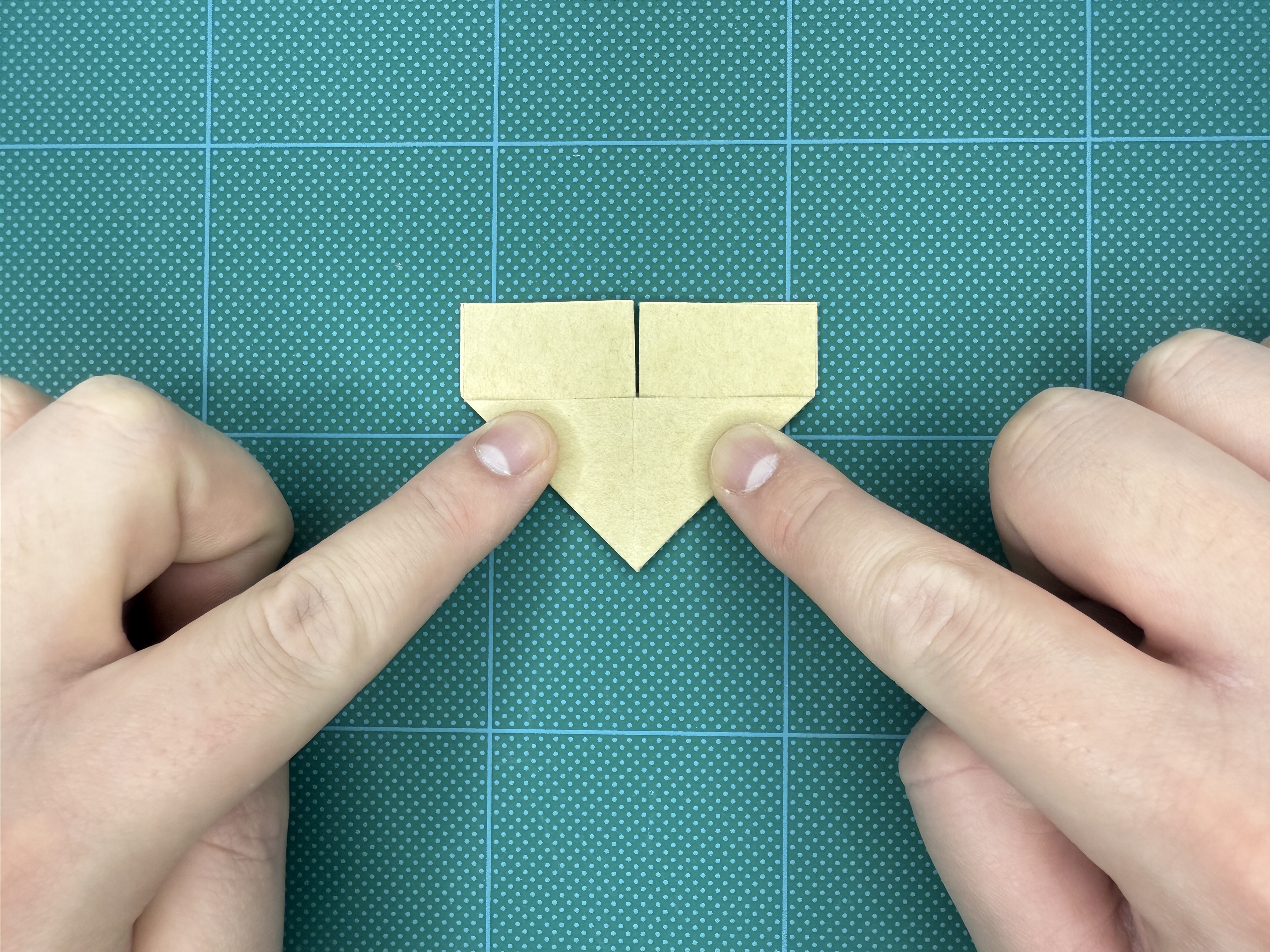 ⑨ 下の部分を三角に折り、クセをつけて戻します。