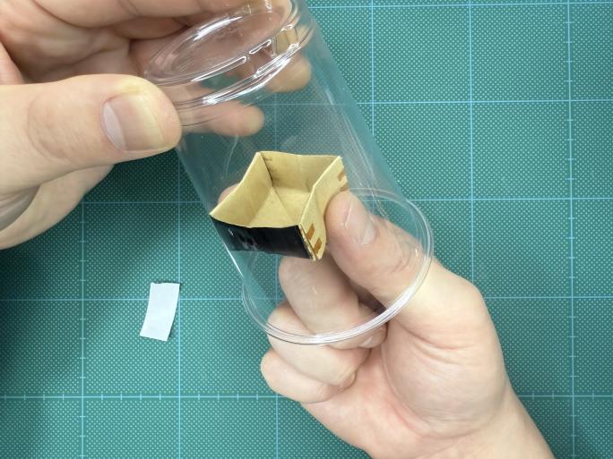 ⑦ ⑥を両面テープごと切り、プラコップに貼ります。