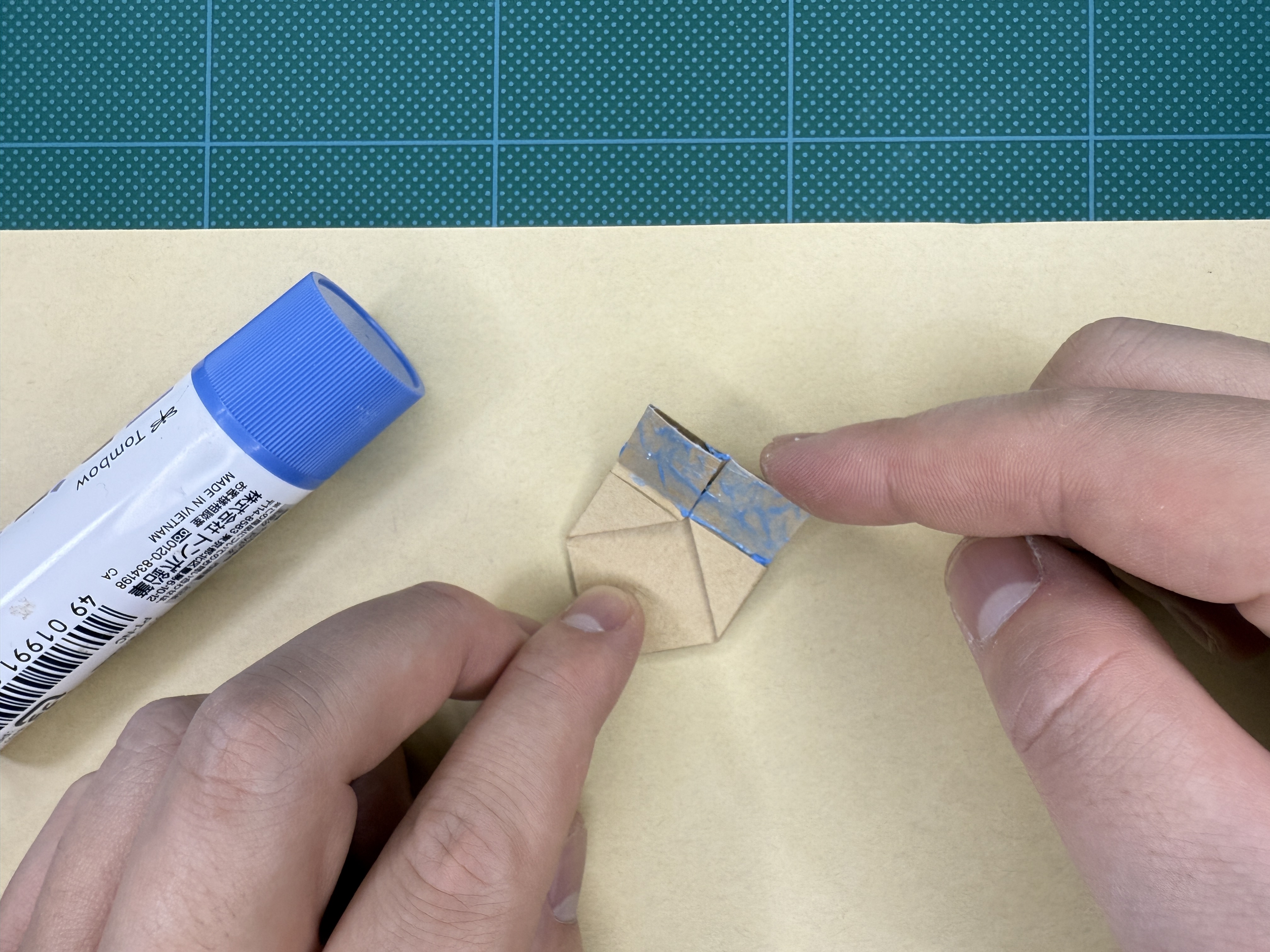 ⑫ ⑨と⑩で折ったところを、のりでしっかり貼ります。