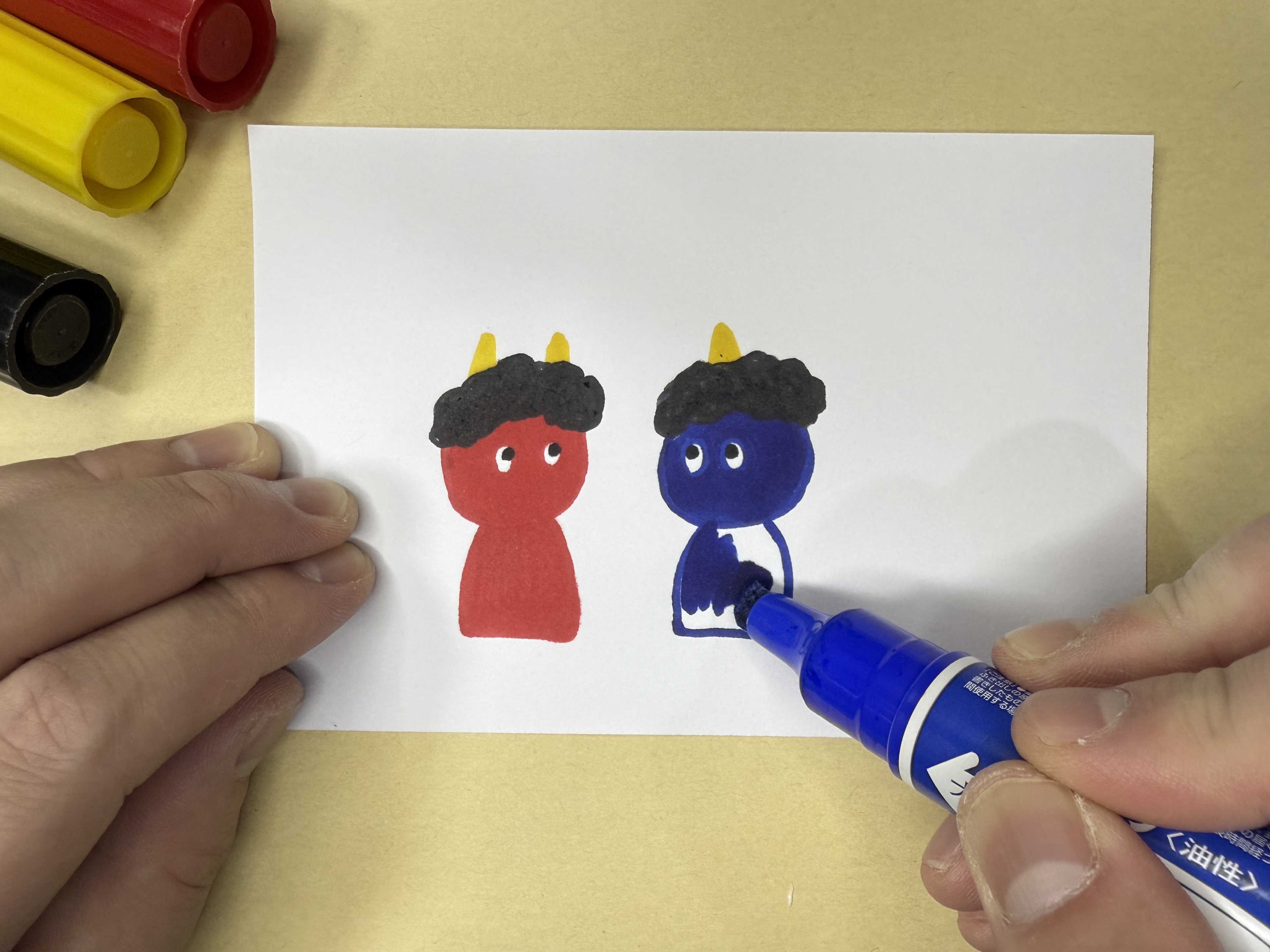 ⑤ 画用紙に装飾(鬼の絵など)を描きます。