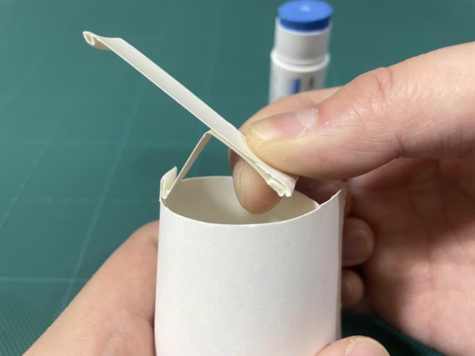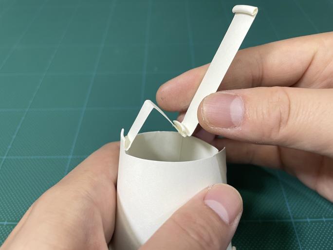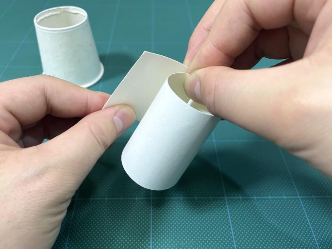 ②「着せ替え用の着物」で使った「開いた紙コップ」を丸めます。