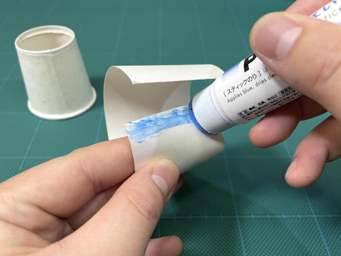 ⑥切った紙をスティックのりで紙コップに貼ります。