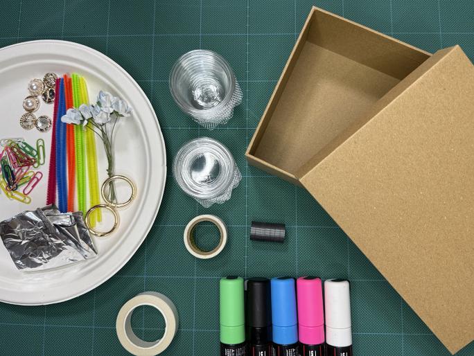 ※フタ付きの箱がない場合は、普通の箱に段ボールの板を貼ると代用可能です。