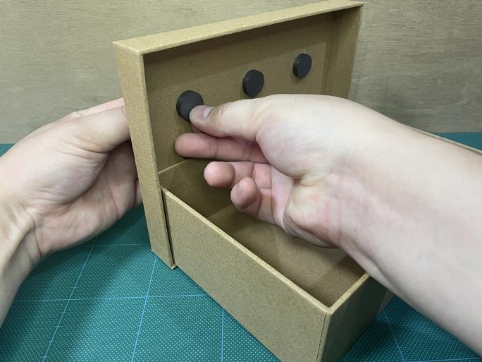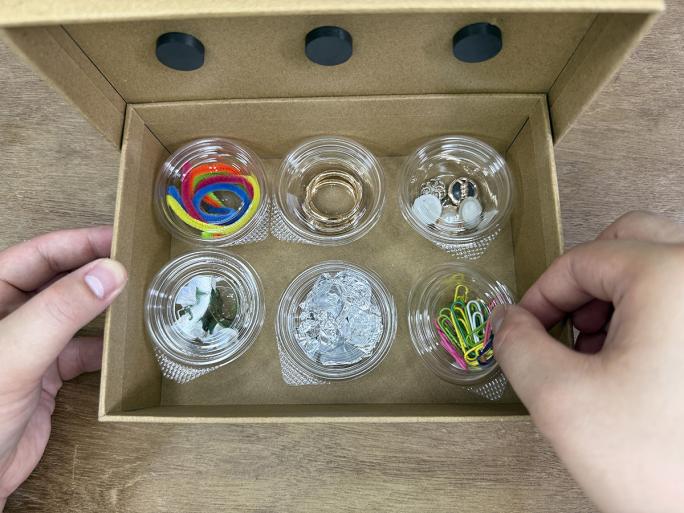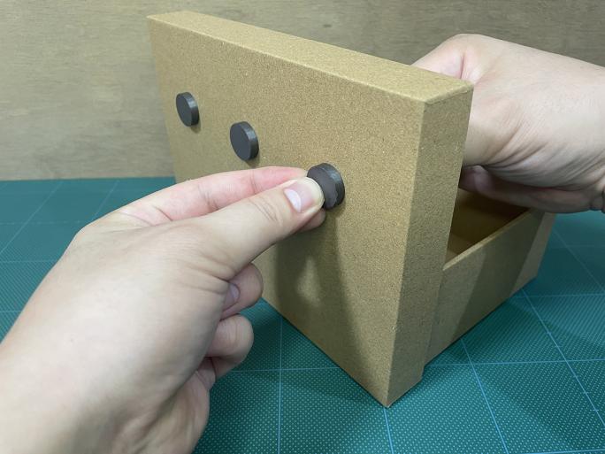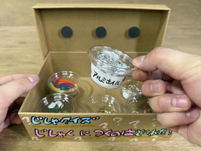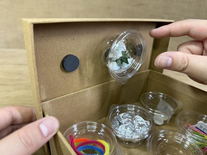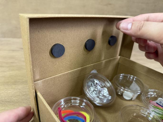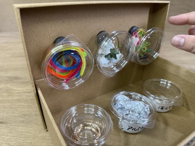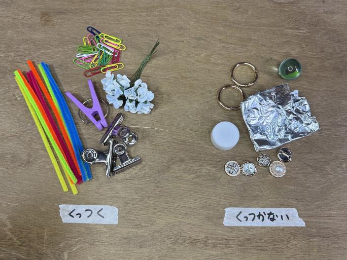 ※今回は箱の3箇所に磁石を貼ったので、正解の「くっつくもの」を3つ用意しました。