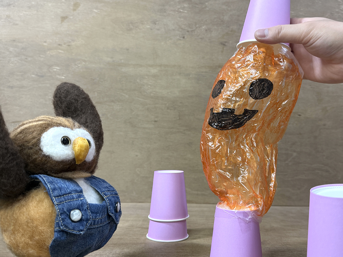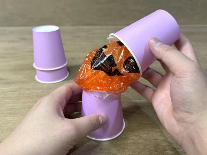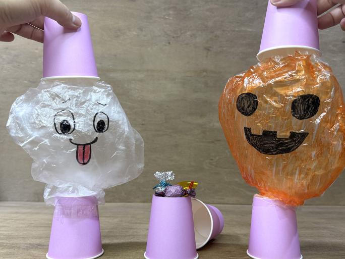 今回は「ポリ袋」と「紙コップ」を使った手作りおもちゃ「トリックコップ」の作り方を紹介します!3つの紙コップの1つだけにお菓子を入れてシャッフルし、どの紙コップにお菓子を入れたかを当てるゲームです。外すとポリ袋でできたお化けが飛び出します!親子で遊べる、ハロウィンにぴったりな工作です!