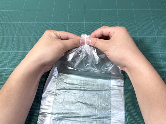① ポリ袋の口が閉じている方を、写真のように寄せてまとめます。