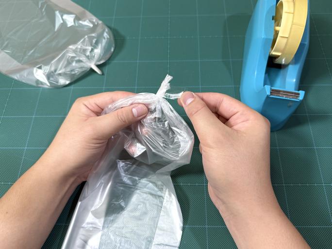※もう一つのポリ袋も同じようにまとめてとめます。