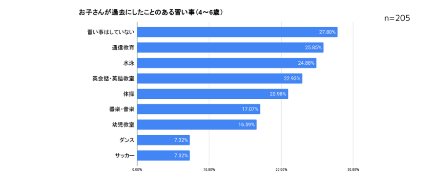 「習い事について」アンケートの結果をご紹介しました。いつからお子さんの習い事を始めるか、どんな習い事がいいのか、悩んでいる方の参考になれば幸いです。
