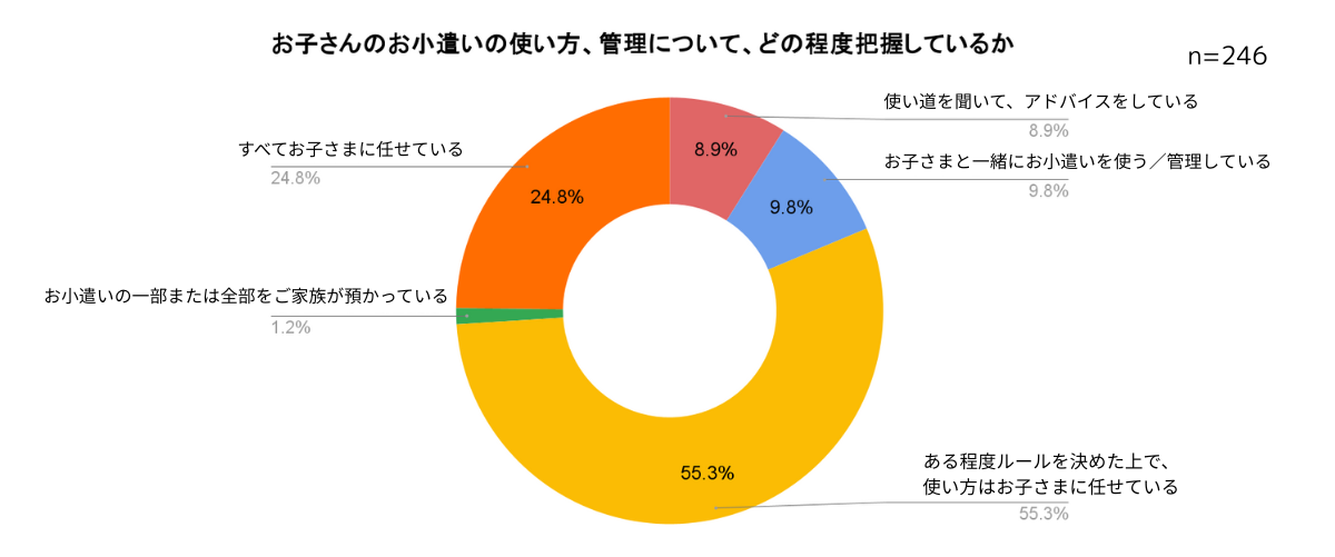 お小遣いを渡している親御さんは、お金について学んでほしいという思いが強いようですが、実際の管理はどのようにされているのでしょうか。また、お子さんはお小遣いでどんなものを買っているのでしょうか。