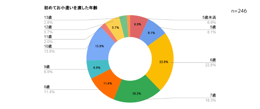 続いて、初めてお小遣いを渡した年齢について訊いてみると、6~8歳と回答された方が約半数という結果になりました。6歳から7歳というと、ちょうど小学校に入学するタイミング。新生活のスタートを機にお小遣いを渡し始める方が多いのかもしれません。
