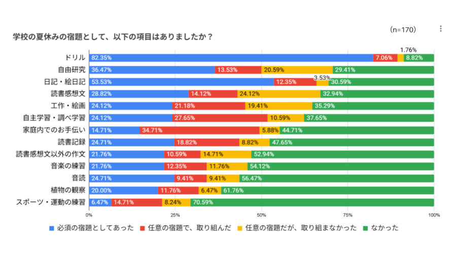 ◆1.学校の夏休みの宿題として、どのような項目がありましたか?