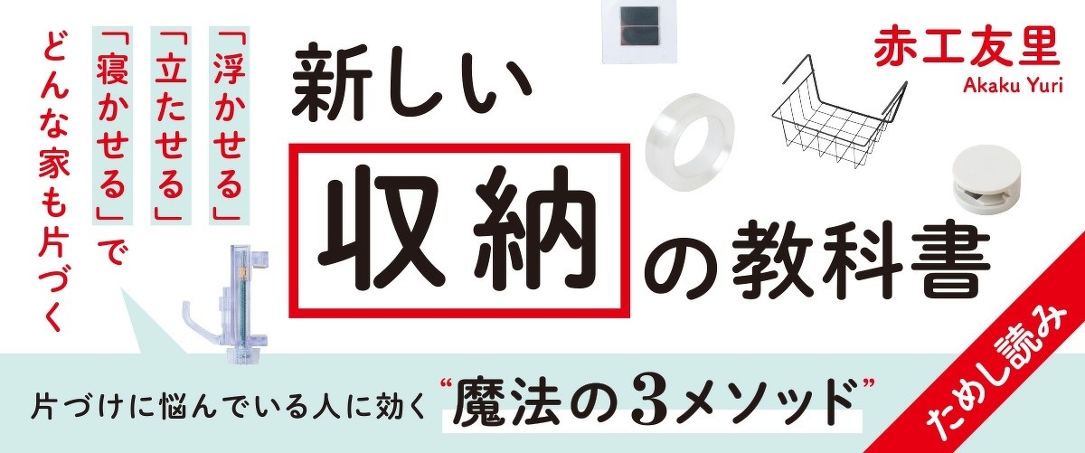 YouTubeの「かぞく収納CHANNEL」で大人気の赤工友里さんの収納法を公開!『新しい収納の教科書「浮かせる」「立たせる」「寝かせる」でどんな家も片づく』のお試し連載です。(毎週日曜更新・全4回)