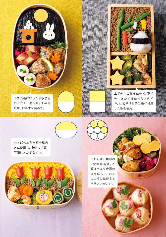 ベーシックな四角いお弁当箱と丸みのあるお弁当箱で仕切り方の例をご紹介します。いつものお弁当箱でも仕切り方を変えれば、おかずの詰め方も変わり、マンネリ化を防げます。