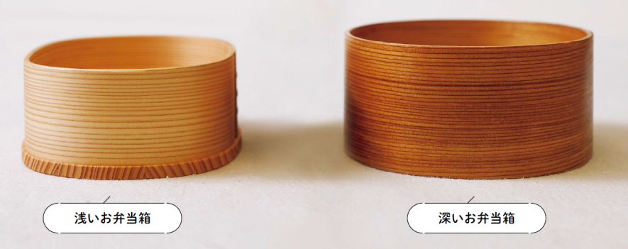 冒頭の「かわいいお弁当に仕上げる秘訣は…」(P4)にて、「高さを揃える」とお話ししました。これを可能にするのが、お弁当箱の深さです。