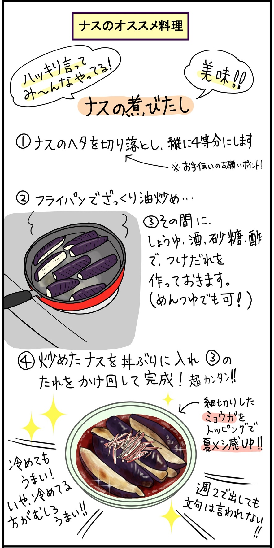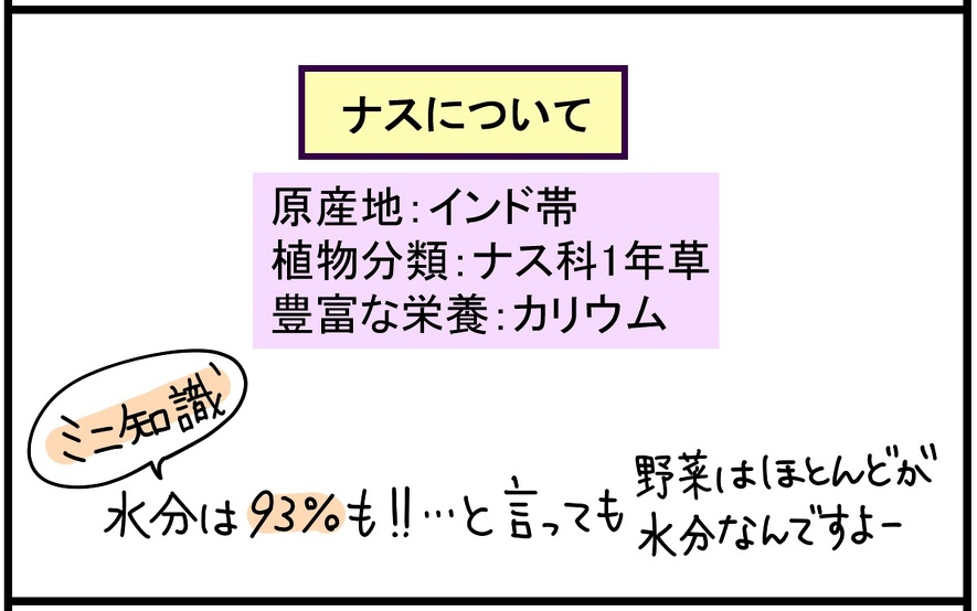 第1回は、カリウムが豊富で、ナスの煮びたしなど、簡単に調理できる「ナス」!