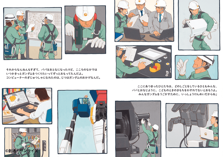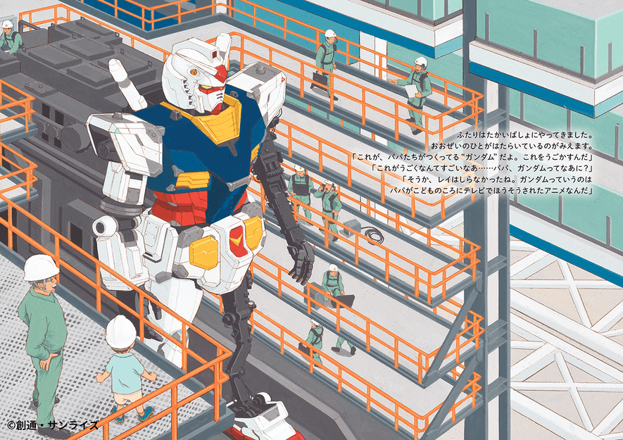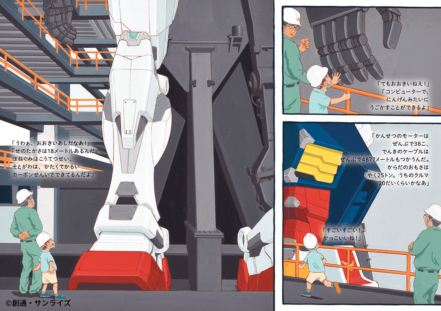 ぜひとも、お父さんたちと一緒にこの絵本を読んで実物大“動くガンダム”のすごさを感じ、ガンダムファクトリーヨコハマに行って、大人たちが子どものころに見た夢がかなったその姿を見てみてください。