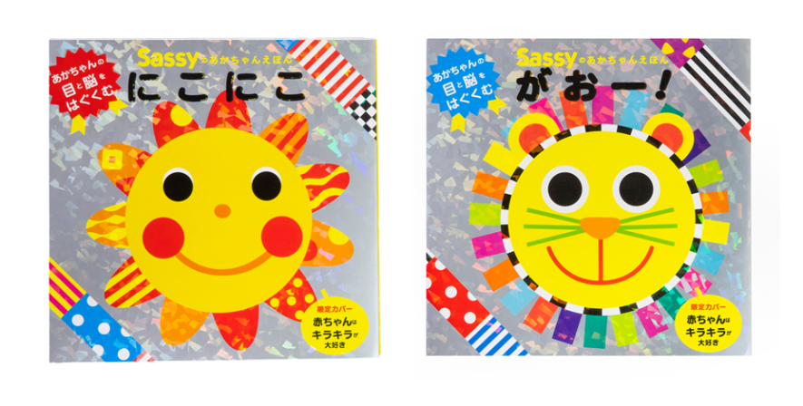 170万部突破の赤ちゃん絵本「Sassyのえほん」シリーズ(監修:Sassy/DADWAY、文・絵・デザイン:La ZOO)より、『にこにこ』『がおー!』の限定キラキラカバー版を発売!