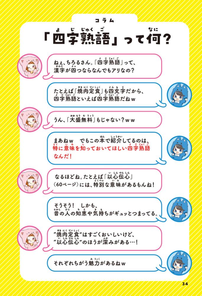 (『ちろぴのとまなぶ!四字熟語100連発』P.34より)
