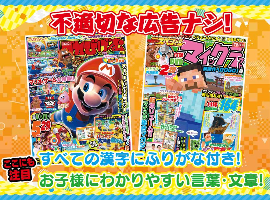 ですが『てれびげーむマガジン』シリーズは子ども向けで、さらに紙の雑誌なので、お子様が不適切な広告を目にする心配がありません! 安心して見せていただくことができます。