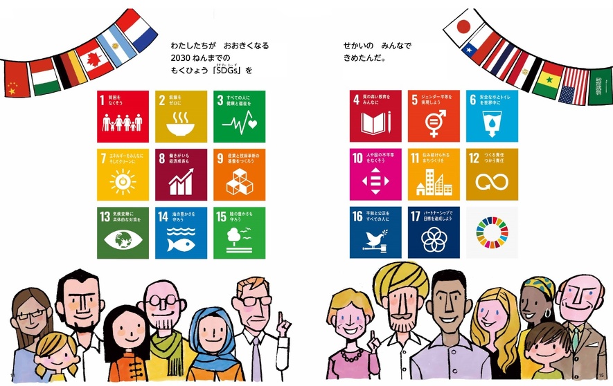 国連本部がロゴ掲載を認めた本のみ表紙に載せることができるSDGsロゴが目印。印税の一部がユニセフに募金されるなど、購入がSDGs活動に直結する、「はじめての子どもむけSDGs絵本」です。