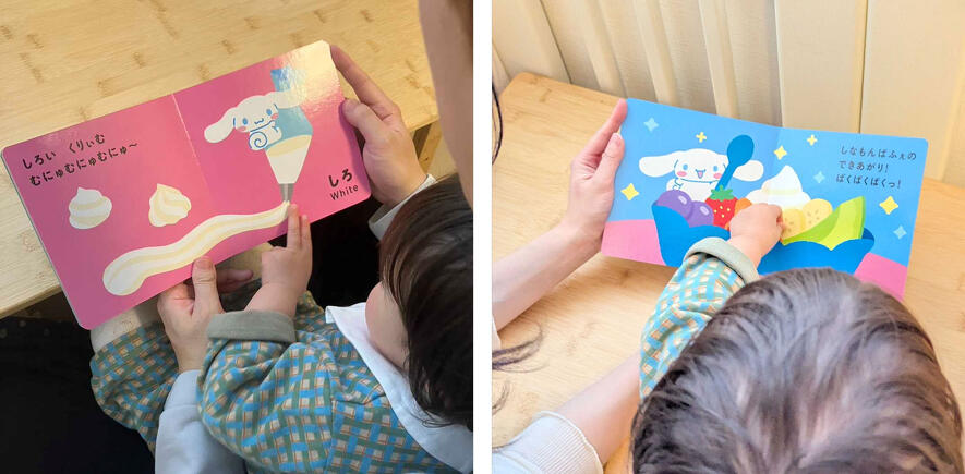 この絵本では、あかちゃんが発音しやすいパ行を中心としたオノマトペを、ポムポムプリンたちのかわいらしい動きで表現することで言葉の習得を促します。