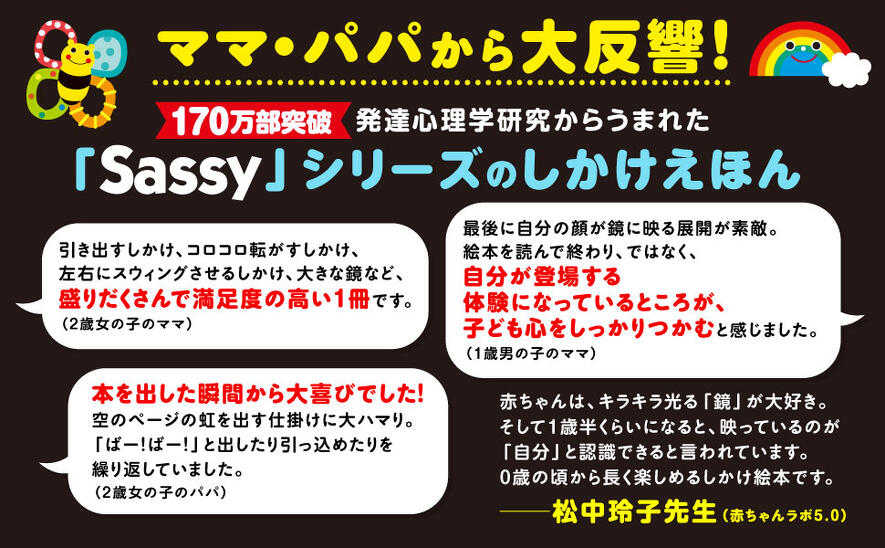 Sassyシリーズ初の<キラキラ鏡>で赤ちゃんが笑う! 泣き止む! 発達心理学から生まれた、表情認知を促すしかけ絵本が新登場